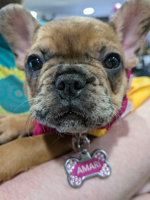 We are pleased to introduce the newest member of our team, Amari, who is currently undergoing training to become a valuable member of our team. She is presently learning essential skills such as sitting, staying, giving her paw, and walking on or off her leash. In the near future, she will be greeting you upon entry to our flower shop. Amari has already begun asserting her authority over us, showcasing her confident lively and spicy personality!